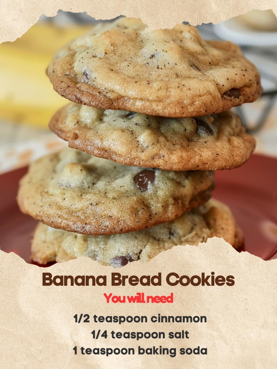 Soft, chewy cookies with the comforting flavor of banana bread, combined with a hint of cinnamon. These banana bread cookies are a delightful twist on a classic quick bread, perfect for snacking or sharing with friends.