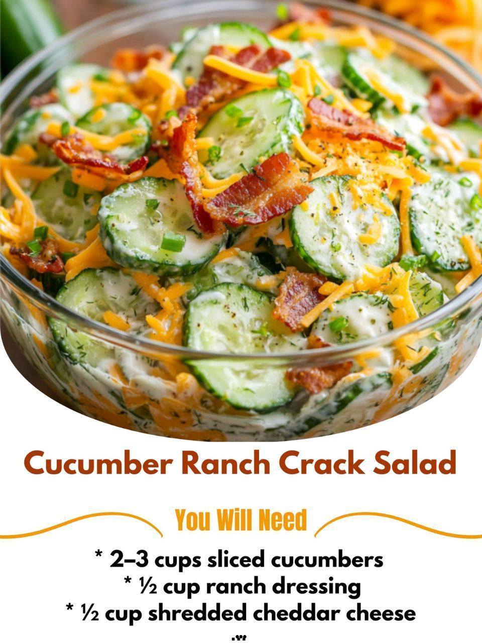 Cool and creamy with just the right pop of crunch this cucumber ranch crack salad is what I turn to every summer when cucumbers start piling up on my counter The bold flavors of rich ranch bacon and cheddar make every bite a refreshing treat perfect for potlucks or a quick family lunch