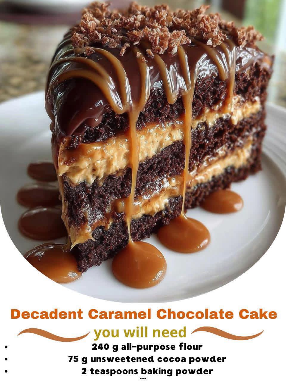 Decadent Caramel Chocolate Cake is a rich, indulgent dessert featuring moist chocolate cake layers, silky caramel sauce, and a luscious chocolate frosting. Perfect for celebrations, holidays, or whenever you want a show-stopping dessert, this cake delivers deep chocolate flavor balanced by buttery caramel sweetness.