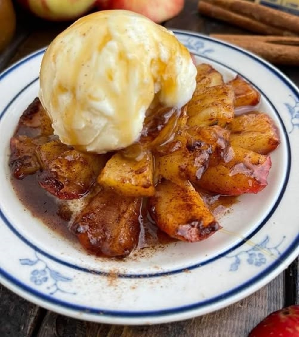 - Extra toppings: Vanilla ice cream, cinnamon and caramel