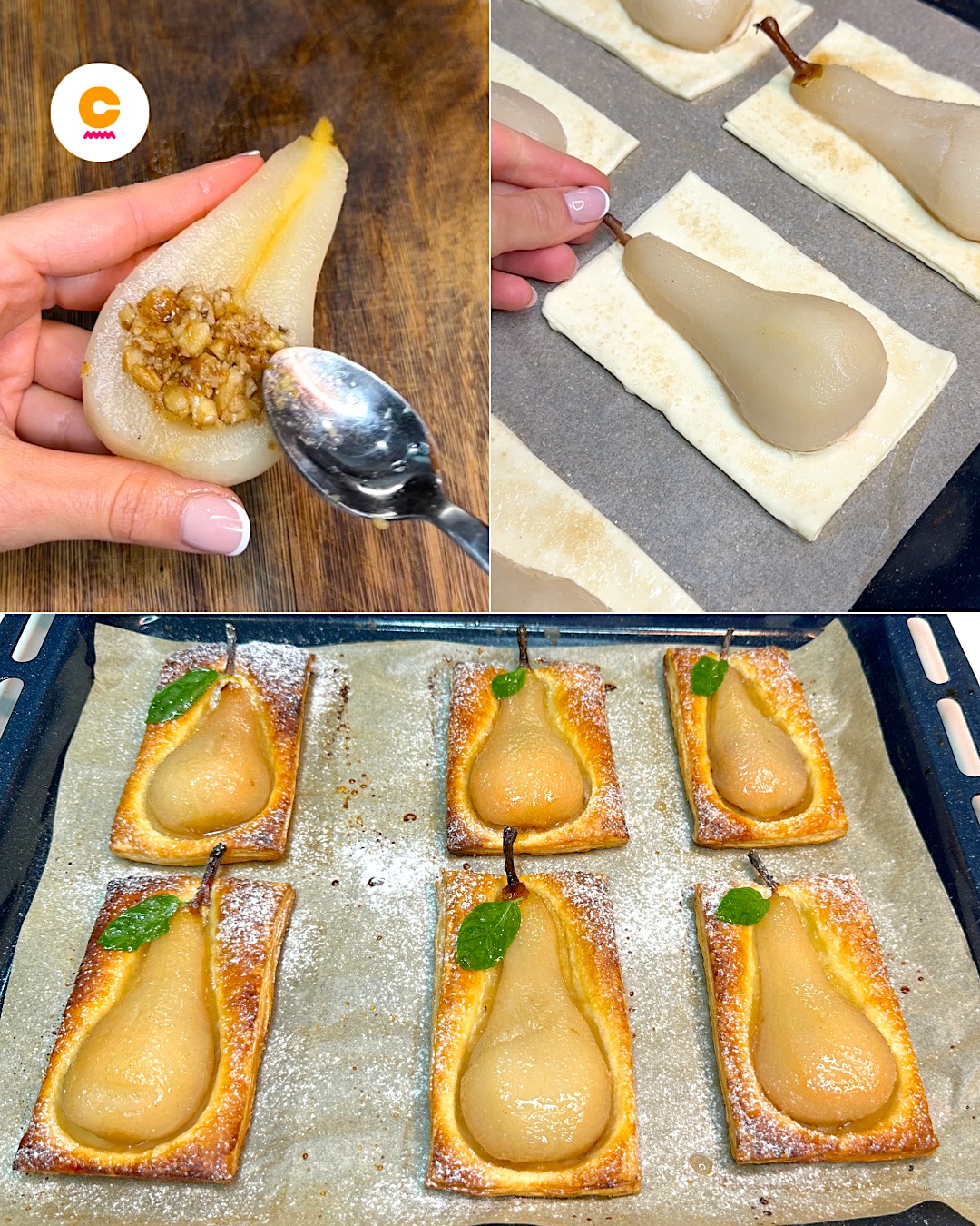 Anyone who loves apple tarts in the fall will enjoy these puff pastry pear tarts as well. The combination of soft and sweet pears with the crunchy walnut filling will keep people coming back for more.