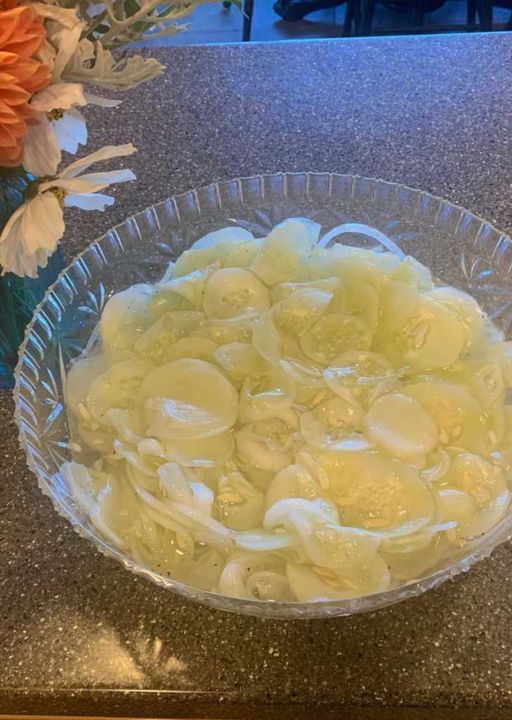 This Refrigerator Cucumber Salad by Barbie Seidl is a simple yet incredibly refreshing side dish. Thinly sliced cucumbers and onions are marinated in a sweet and tangy vinegar dressing, making it a perfect cool and crisp addition to any meal, especially during warmer weather. Making it the day before allows the flavors to meld beautifully.