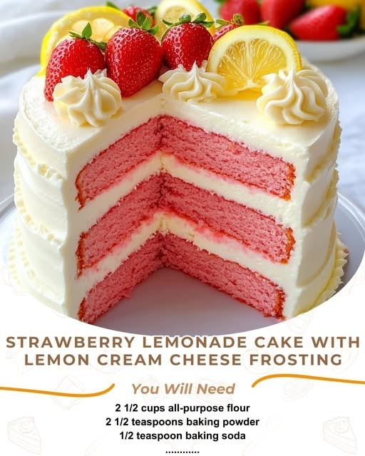 Strawberry Lemonade Cake with Lemon Cream Cheese Frosting is a bright, refreshing, and show-stopping dessert that’s perfect for any celebration. With soft strawberry and lemon layers stacked high and wrapped in tangy, creamy frosting, this 4-layer cake delivers incredible flavor and visual appeal in every slice. Whether for a special occasion or a summer gathering, this cake is guaranteed to impress and become a favorite centerpiece dessert.