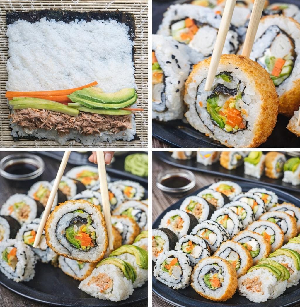 – Sesame seeds, avocado slices, or breadcrumbs (for fried sushi)